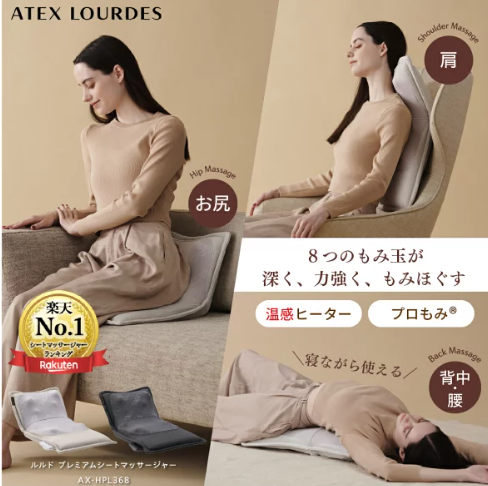肩から背中、腰、さらにはお尻や太ももまで広範囲に対応しており、全身の疲れを手軽に解消したい方に最適なモデルです。