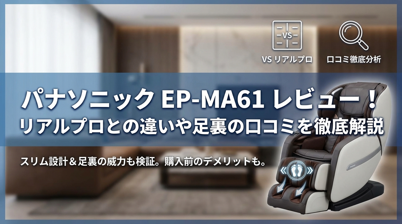 そんな方に朗報となるのが、パナソニックの「スリムプロ EP-MA61」です。 結論から言うと、この製品は最上位機種リアルプロに迫る強力な揉み心地を備えながら、横幅68cmのスリム設計と258,299円という圧倒的なコストパフォーマンスを実現した一台です。
